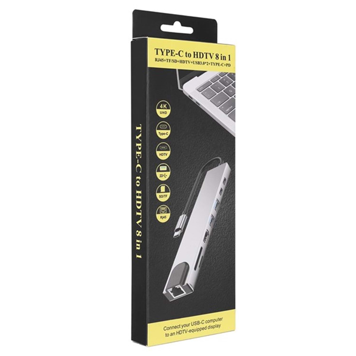 HYTECH HY-USBC83 4K@30Hz Gri Metal 2xUSB3.0, 1xUSB2.0, Gigabit PD, TypeC Data, SD/TF Kart Okuyucu Type C Adaptör